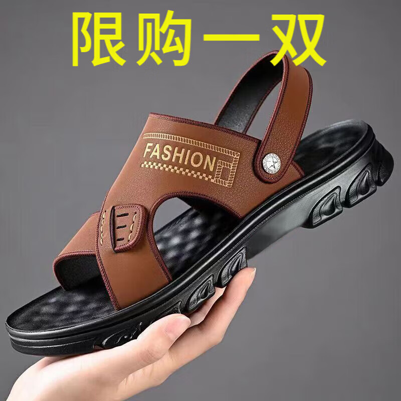凉鞋男秋季新款鞋子男士防水防滑男鞋软底休闲沙滩鞋皮凉拖鞋子男 FAS【棕色】 42 (260mm)