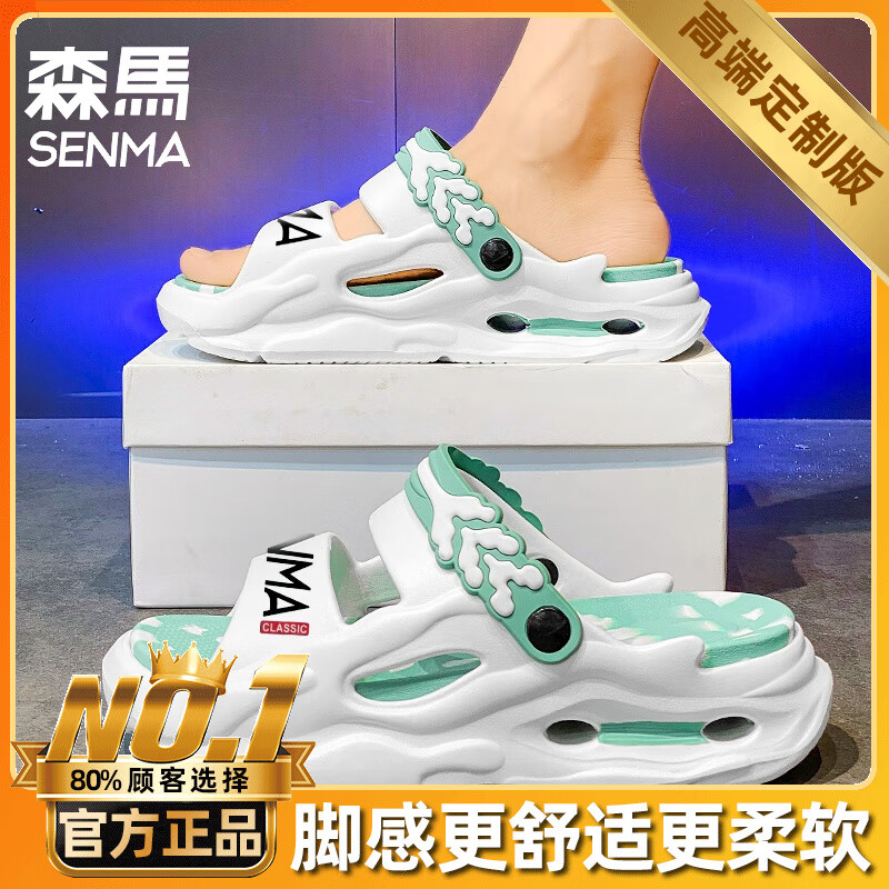 森馬拖鞋男夏季外穿厚底防滑户外运动两用青少年踩屎感二合一沙滩凉鞋 白色(旗舰款) 42-43
