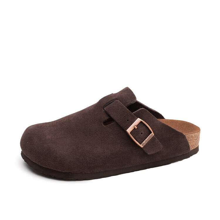 布萝琳勃肯鞋休闲软木拖鞋情侣同款外穿包头鞋春秋季半拖鞋博肯鞋 深棕色 40