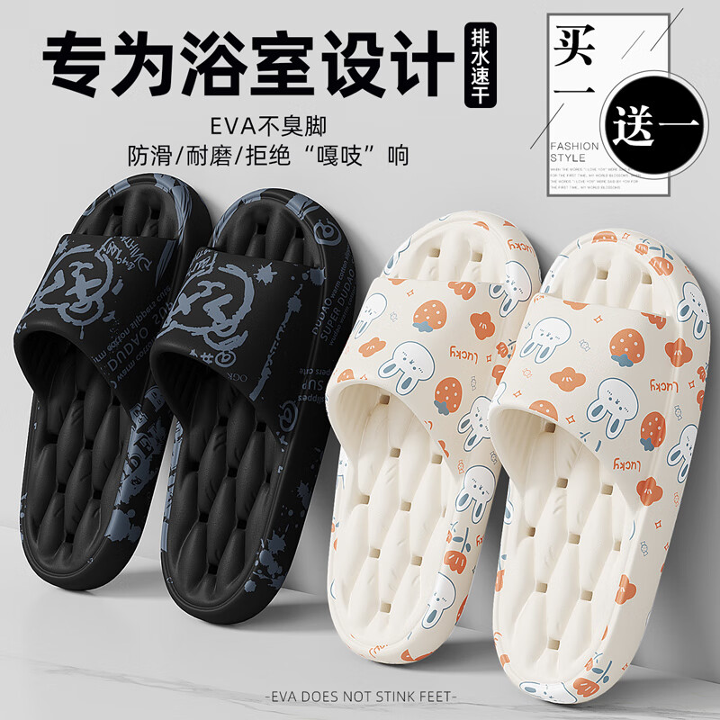 安尚芬买1送1浴室拖鞋女夏季2025新款家居室内情侣一对防滑洗澡凉拖男士 白色花朵兔子+黑色xv熊 【漏水】 38-39 女+男44-45