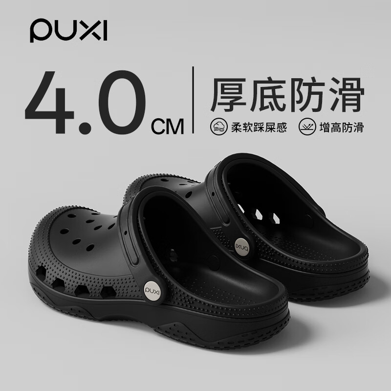 朴西女士洞洞鞋户外沙滩鞋亲子情侣凉拖鞋休闲夏季厚底静音防滑凉鞋男 成人黑色 盲选不会错 40 (250mm)