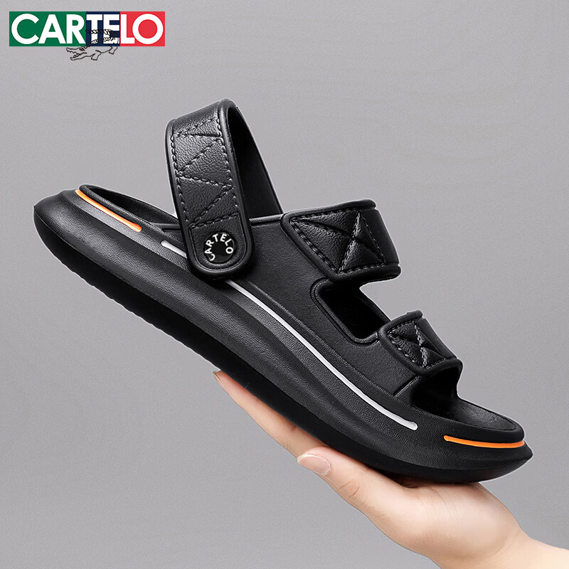 卡帝乐鳄鱼(CARTELO)凉鞋男夏季软底潮休闲两用凉拖鞋男士户外沙滩凉鞋 黑色 40/41码
