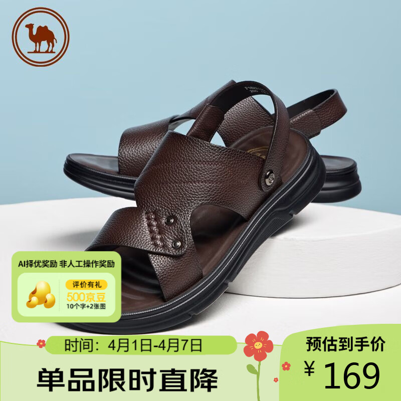 骆驼牌 凉鞋男头层牛皮沙滩鞋露趾透气两穿拖鞋 P16M211013 棕色 43