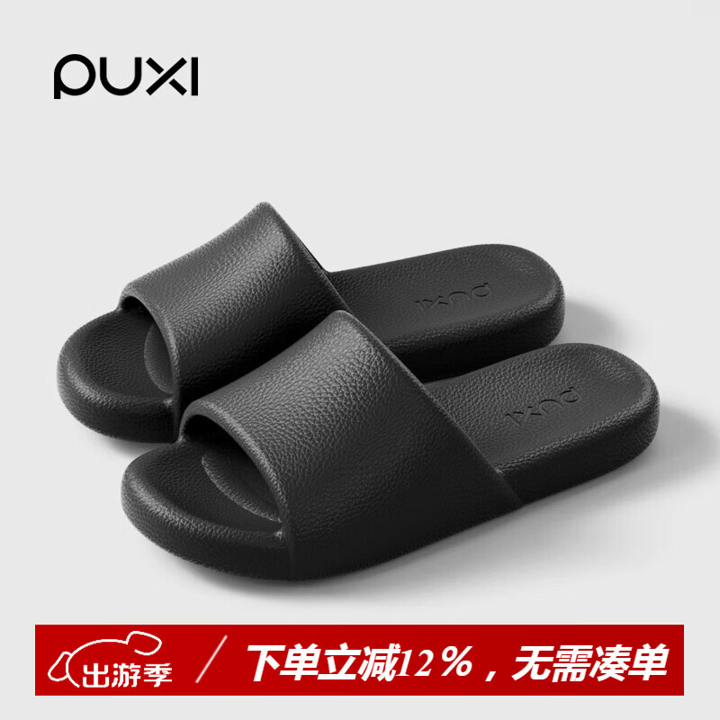 朴西新款拖鞋女款皮纹软底静音家居室内EVA防滑防臭浴室凉拖鞋男 礁石黑 【宽松不挑脚】 42-43