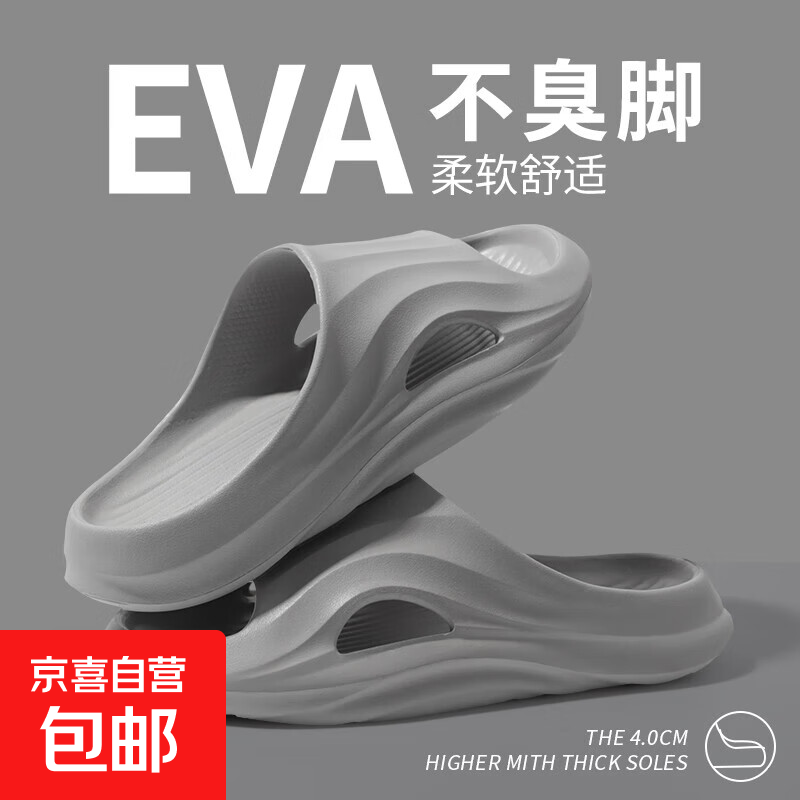 2025新款eva凉拖鞋女轻便舒适防滑凉拖鞋男士情侣款浴室洗澡拖鞋 SS6627-灰色 42-43 偏小一码