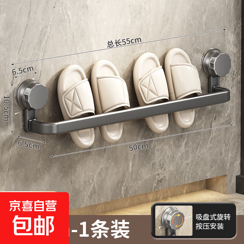强力吸盘拖鞋架卫生间免打孔厕所壁挂置物架浴室沥水挂架收纳神器 枪灰55cm-吸盘双人拖鞋架