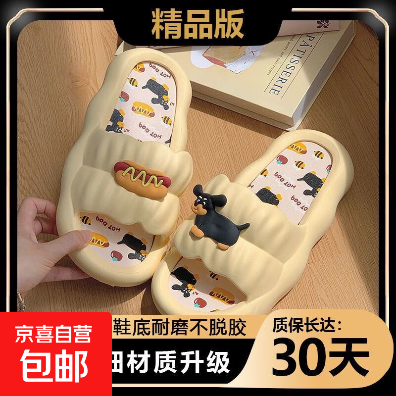踩屎感卡通热狗拖鞋女夏外穿网红2026新款厚底家居防滑凉拖鞋夏天 8836热狗-米黄【柔软防滑版】 38 -39 偏小一码