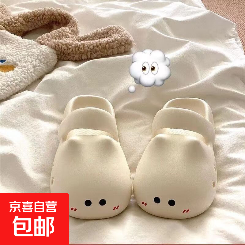 网红软底可爱小猫咪拖鞋女防滑夏季时尚百搭包头半拖鞋防臭外穿女 白色 38-39 适合37-38脚