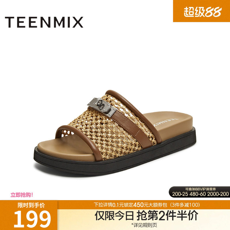 天美意一字拖复古度假厚底拖鞋女外穿休闲凉鞋夏季新款KT064BH5