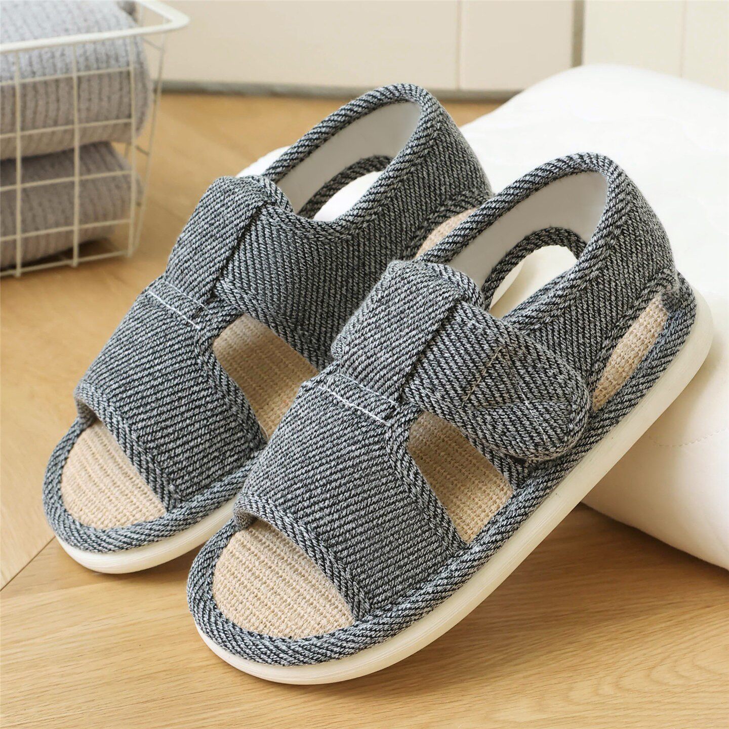 夏季可调节亚麻凉鞋男女款居家外穿布鞋防滑休闲软底大开口布拖鞋