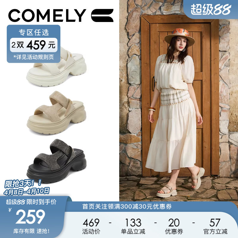 康莉厚底一字带拖鞋女2025年夏季新款休闲运动凉拖鞋外穿海边鞋子