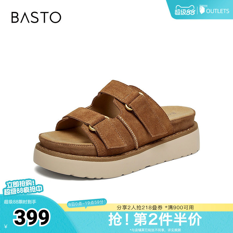 百思图2026夏季新款商场同款时尚复古休闲女拖鞋ZHT89BT6