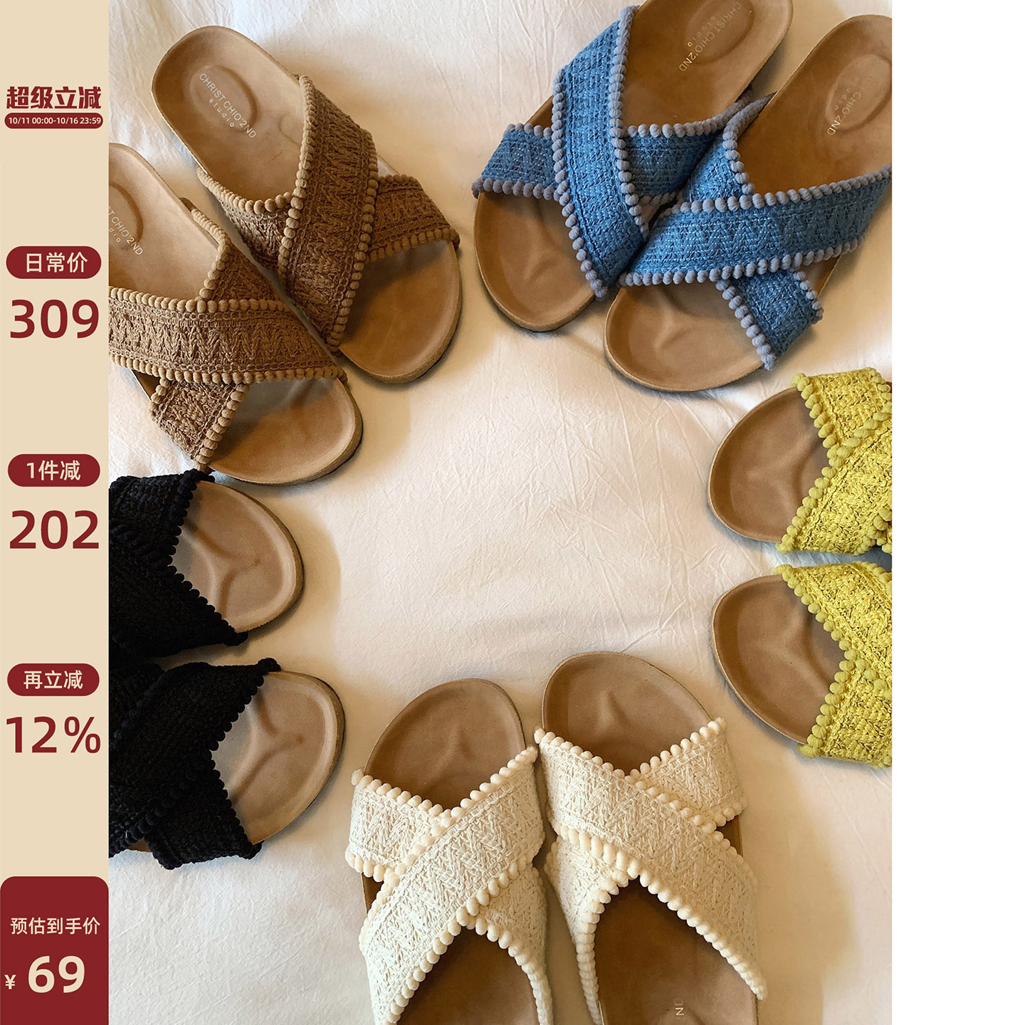 Chio2nd南风 拖鞋女外穿夏天2025新款交叉织布配裙子海边绝美凉拖