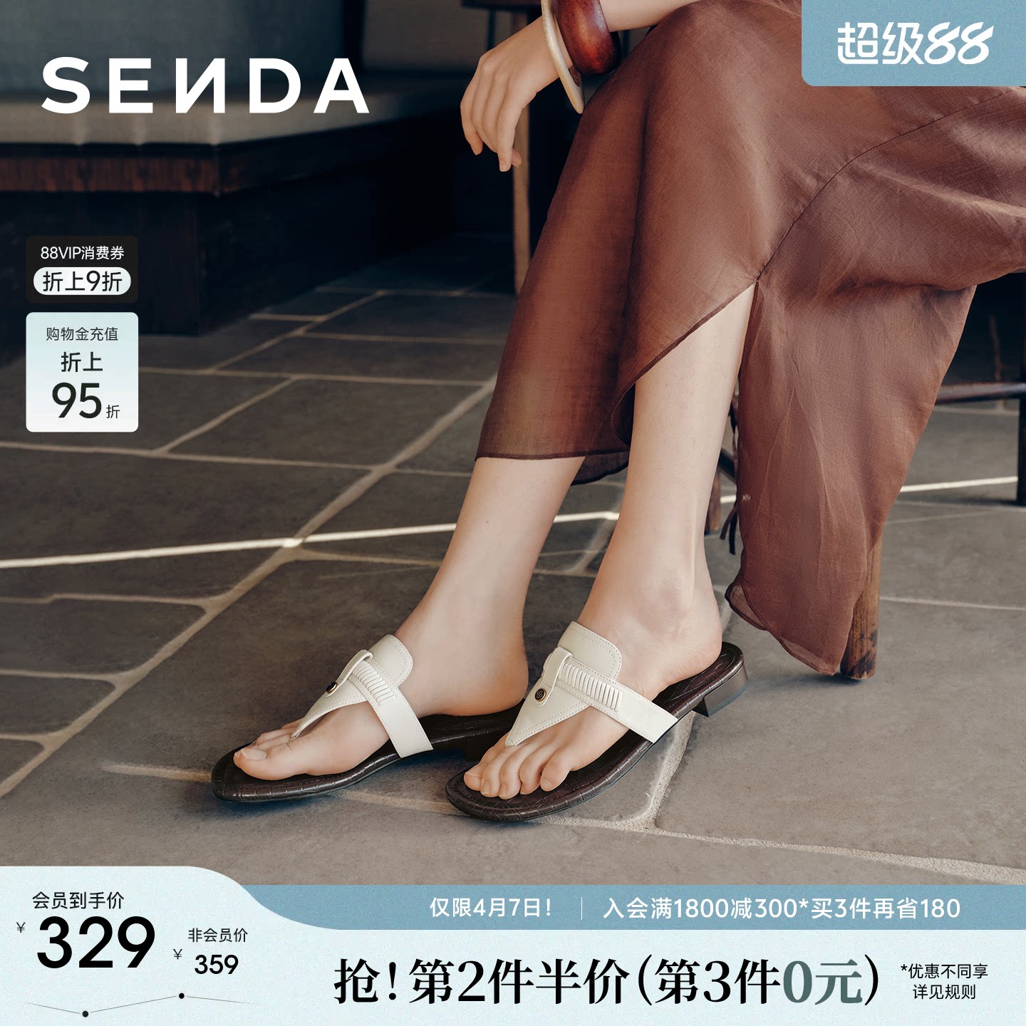 森达羊皮人字拖女鞋26夏季新款海边沙滩夹趾拖软面舒适外穿凉拖鞋