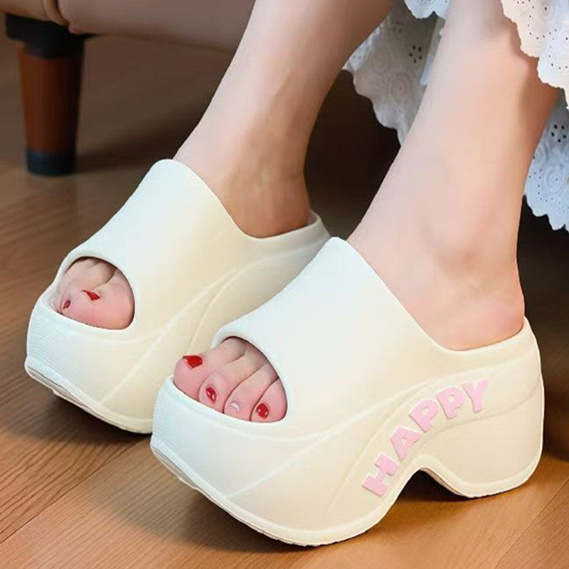 拖鞋女夏时尚可爱居家高跟室内一字拖防滑坡跟沙滩鱼嘴外穿凉拖鞋