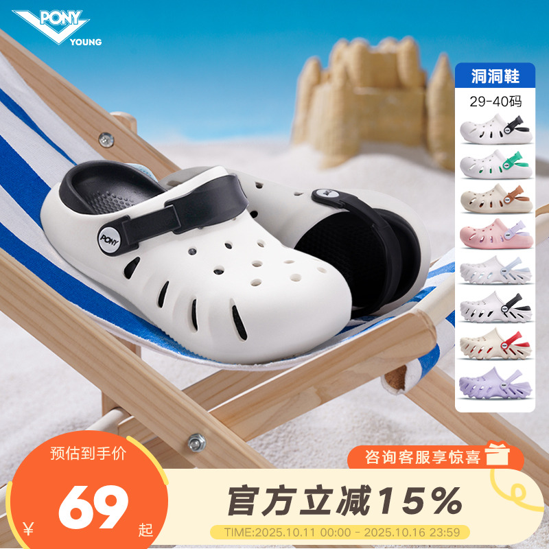 pony童鞋洞洞鞋儿童凉拖鞋25年夏季新款一脚蹬户外沙滩鞋包头拖鞋