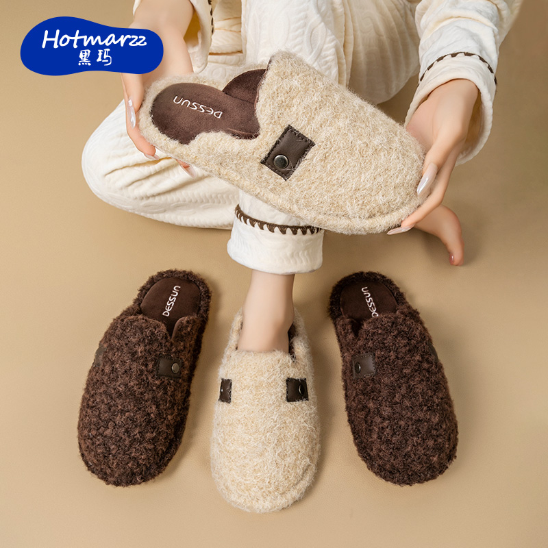 hotmarzz/黑玛棉拖鞋女士居室内穿防滑2025新款秋冬季女款毛毛鞋