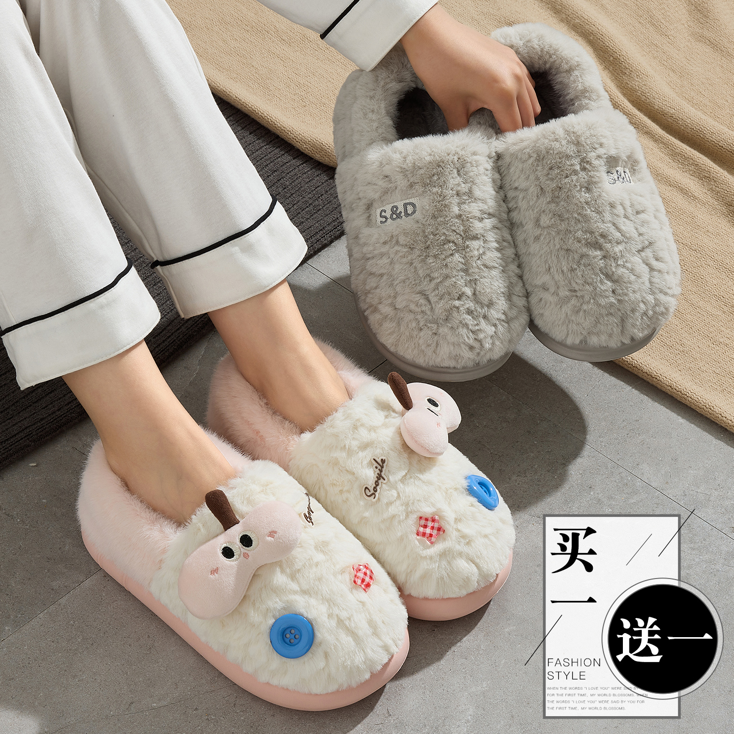 买1送1棉拖鞋女款冬季包跟家居室内情侣一对厚底保暖毛绒棉鞋男士