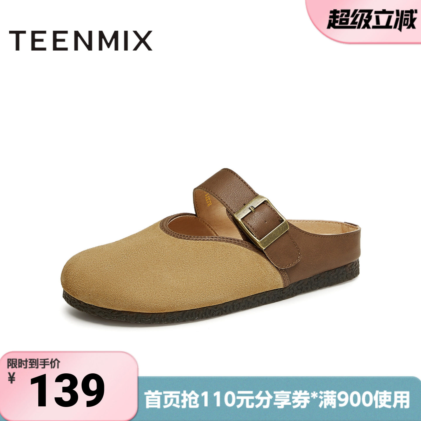 天美意穆勒鞋包头半拖鞋女外穿凉拖平底凉鞋子新款CMM06BH4