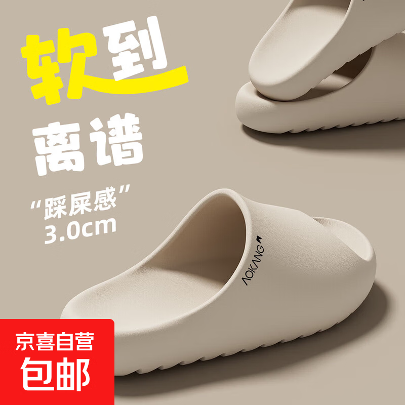 踩屎感拖鞋男士夏季居家厚底eva防滑防臭浴室洗澡用凉拖鞋男外穿 浅卡其 42-43 【适合41-42】