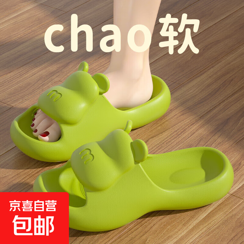 新款拖鞋女夏季踩屎感室内居家浴室舒适外穿卡通凉拖鞋女士一字拖 绿色 38-39
