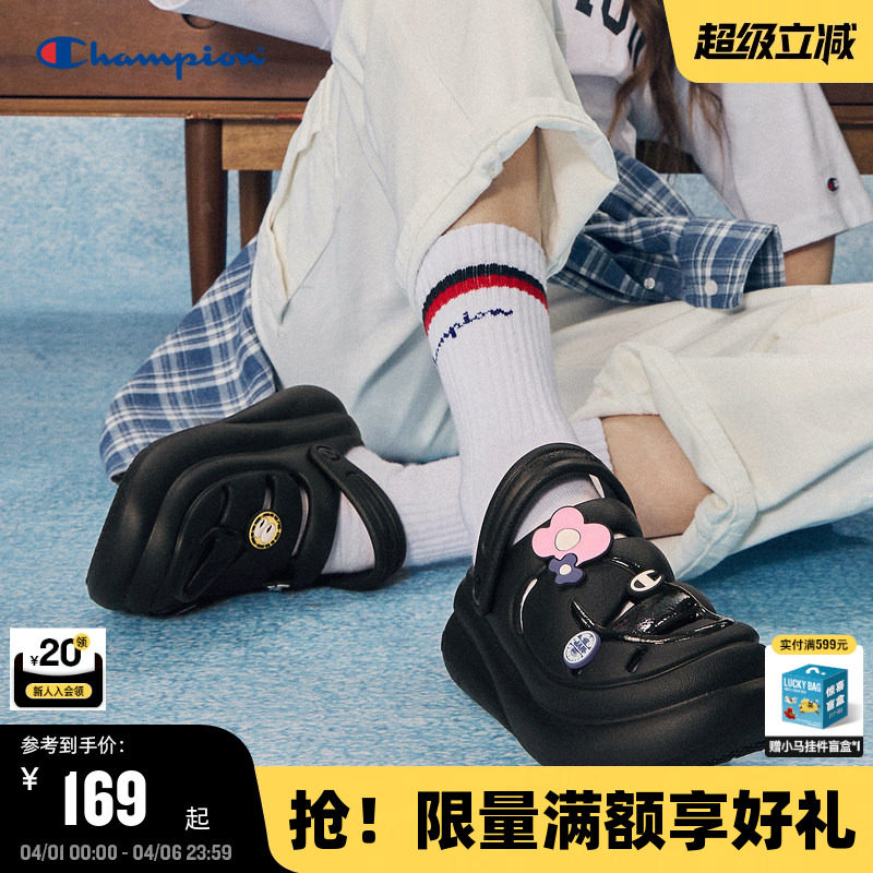 Champion冠军蘑菇洞洞鞋夏季趣味潮牌沙滩拖鞋厚底休闲凉鞋女