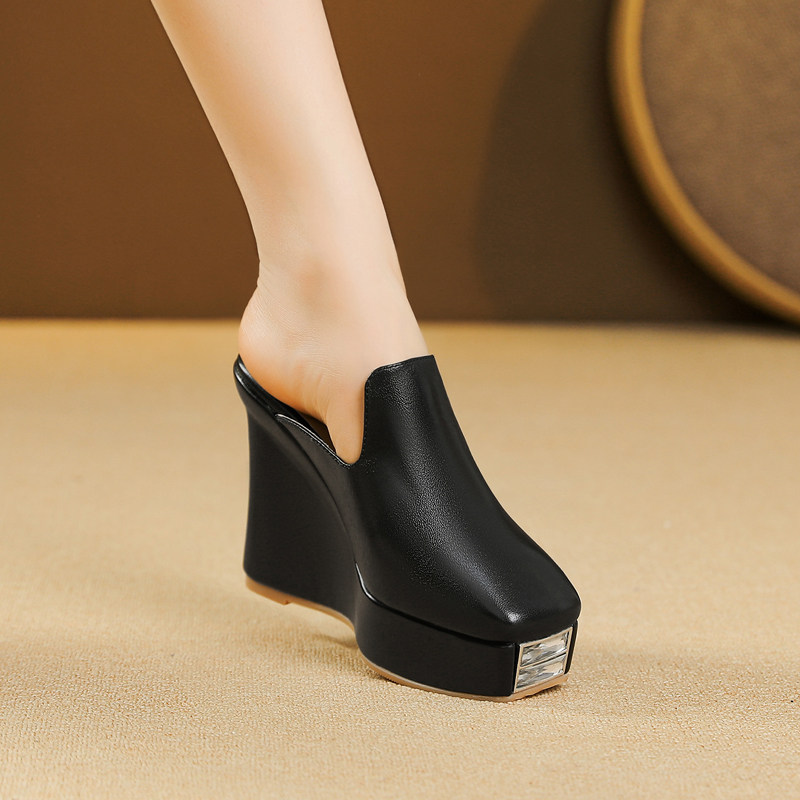 坡跟真皮英伦外穿凉拖鞋女夏季新款法式松糕底百搭高跟方头包头鞋