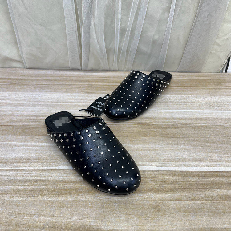 外贸原单女鞋新款时尚shoes圆头纯色包头平底半拖鞋日常休闲鞋