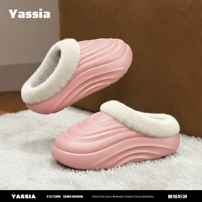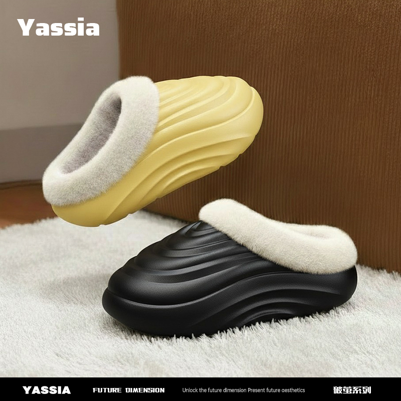 亚束破茧拖鞋秋女款户外情侣拖鞋棉毛绒男士室内家居一脚蹬棉拖鞋