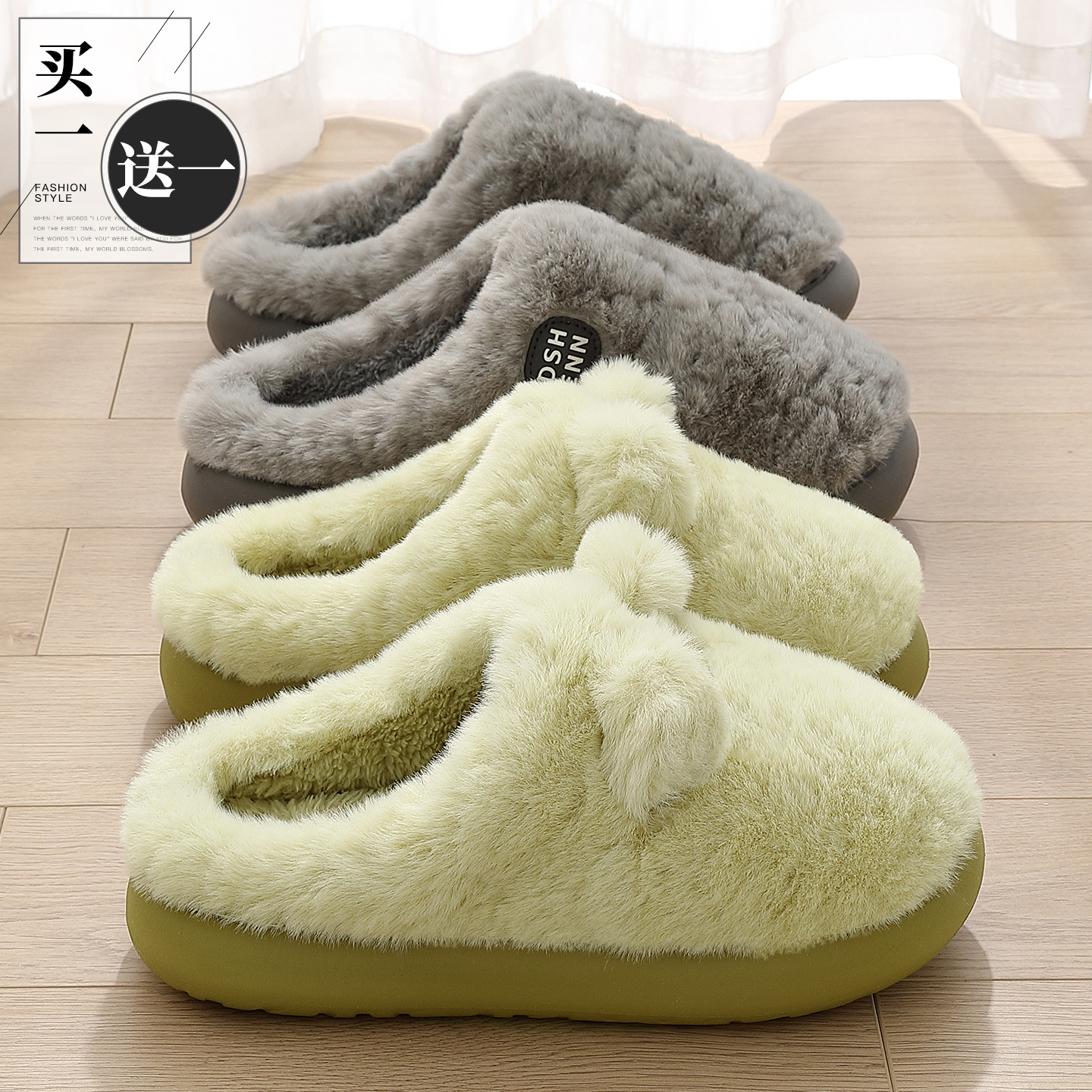买1送1棉拖鞋女秋冬季室内家居情侣一对保暖防滑厚底毛绒棉拖男士