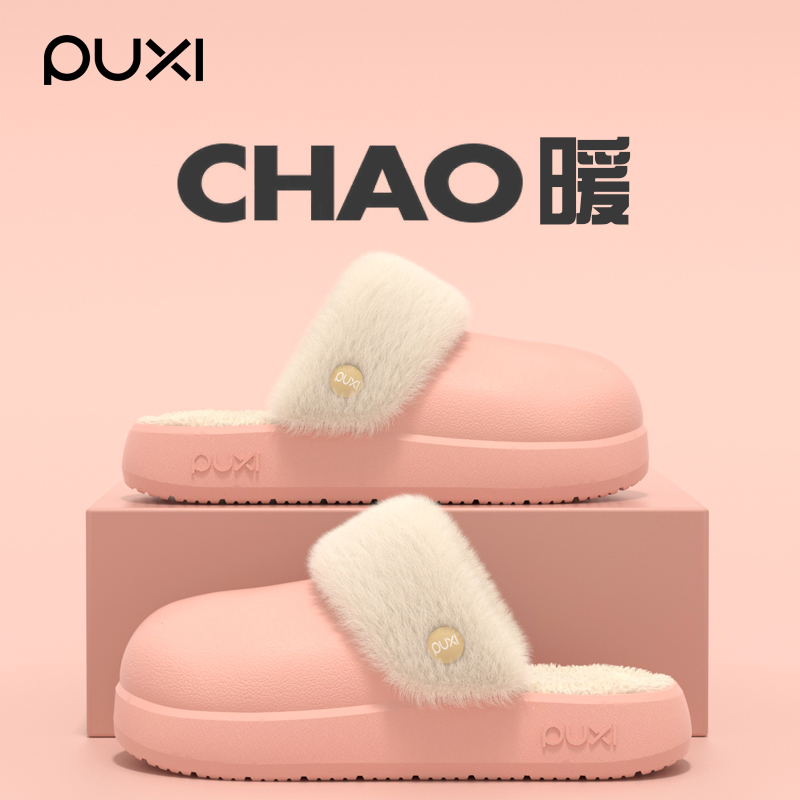 朴西秋冬季新款软底棉拖鞋女居家静音加绒保暖防滑简约情侣棉拖男
