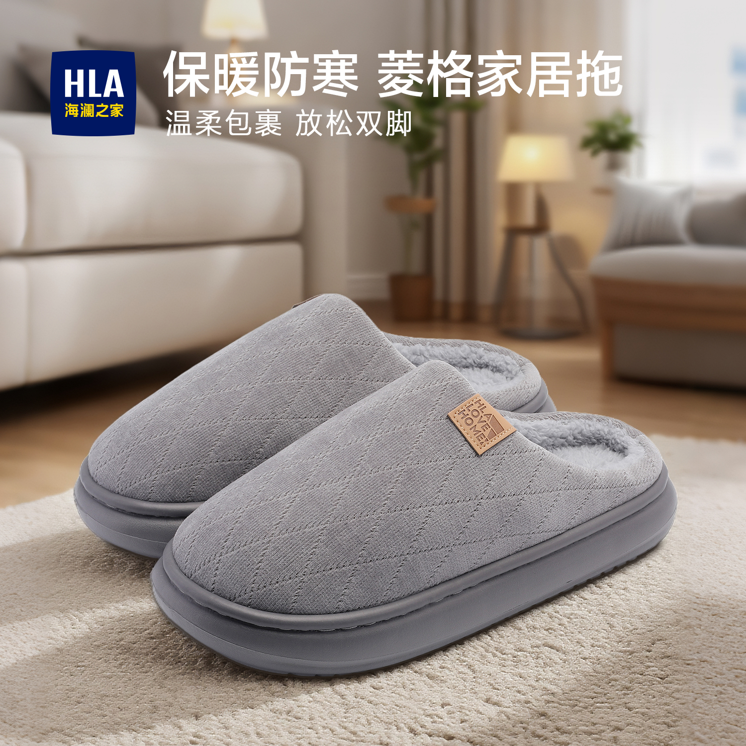 海澜之家棉拖鞋男秋冬季2025新款棉拖加绒保暖女款外穿毛毛绒厚底
