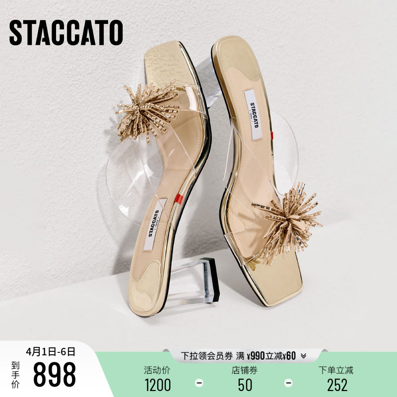 思加图2026新款水晶烟花仙女鞋粗跟凉拖鞋外穿凉鞋女鞋子EC403BT6