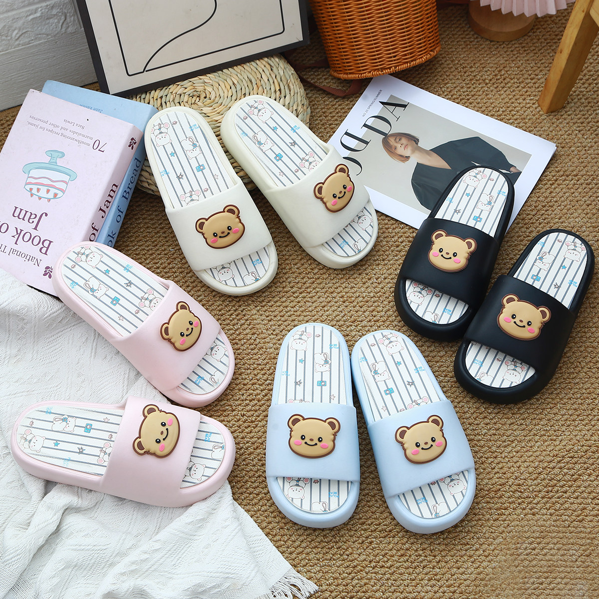 可爱卡通小熊EVA凉拖鞋男女夏季情侣防滑可拆卸居家外穿2026新款