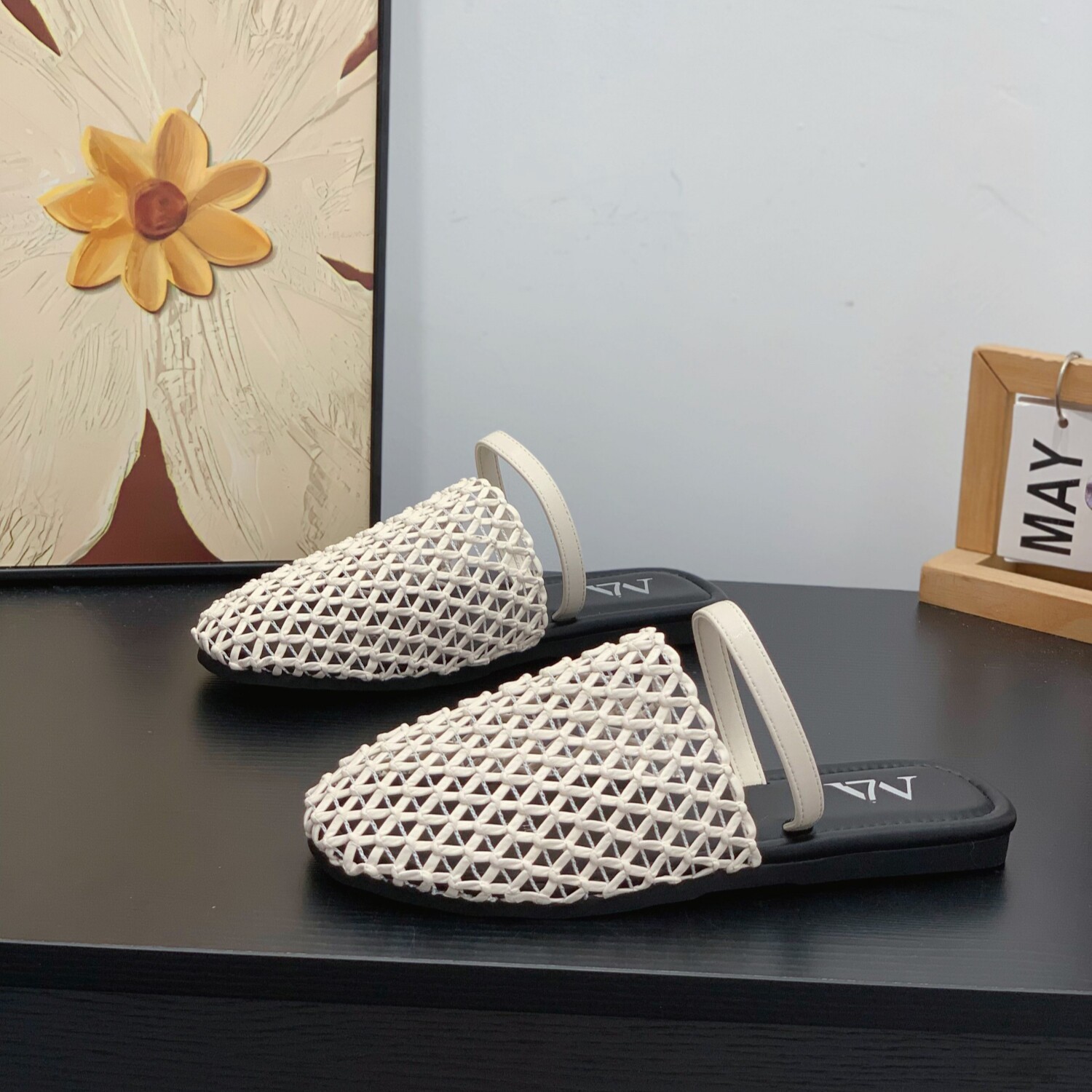 夏季镂空网面法式编织平底包头拖女2026超火时尚外穿一字带半拖鞋