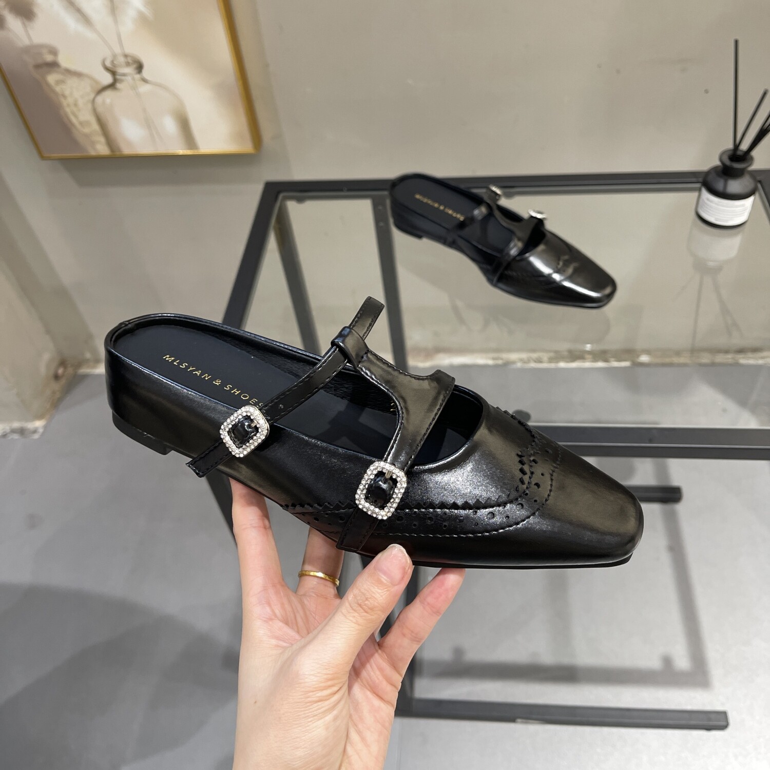 纯原!有点帅哦~英伦风洋气印花头层牛皮擦色手工平跟穆勒凉拖鞋