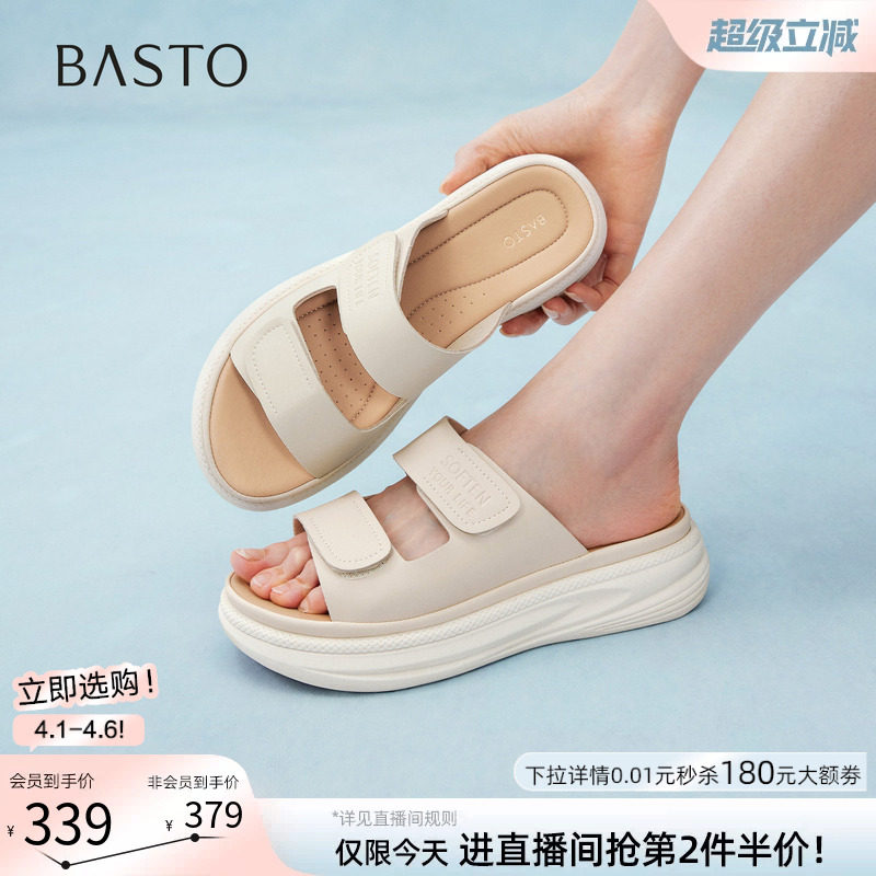 百思图2026夏季商场新款舒适厚底增高休闲凉拖外穿女拖鞋UCLB4BT6