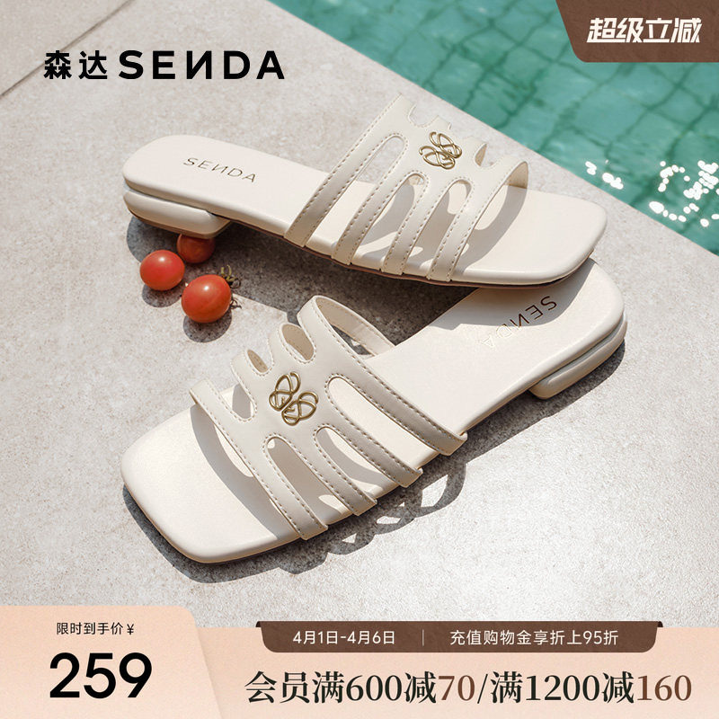 森达凉拖鞋女款夏新居家简约休闲方头气质平跟凉鞋ZTG35BT5