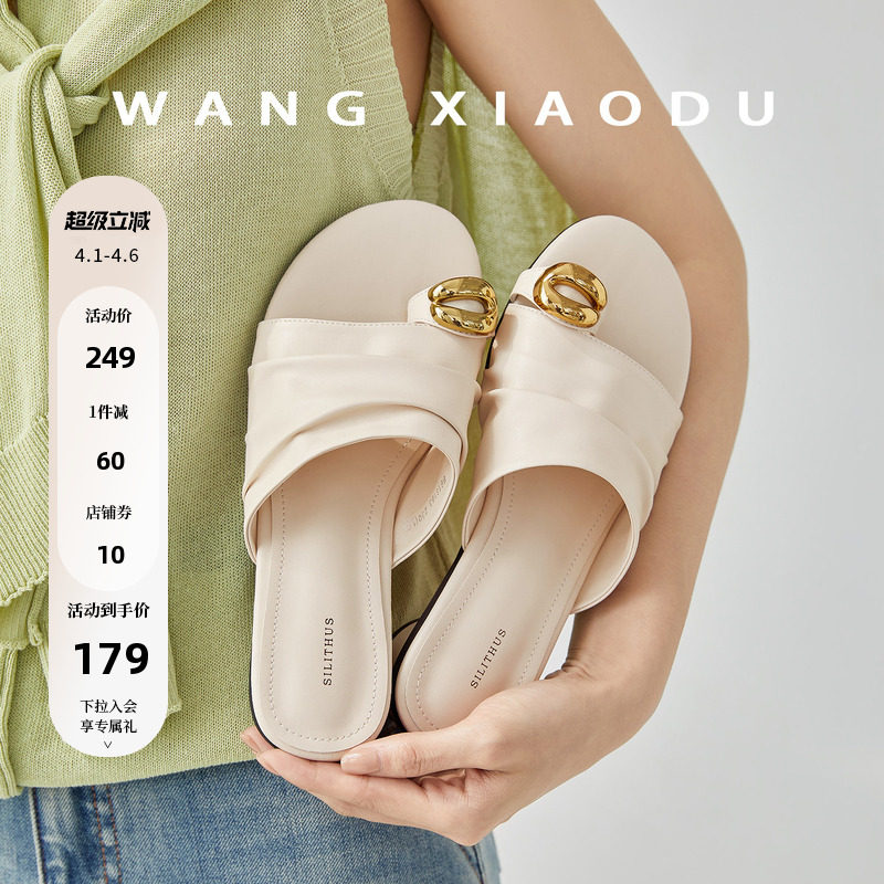 【王小毒】春和景明●粗跟包头拖鞋女夏外穿高级感银色褶皱穆勒鞋