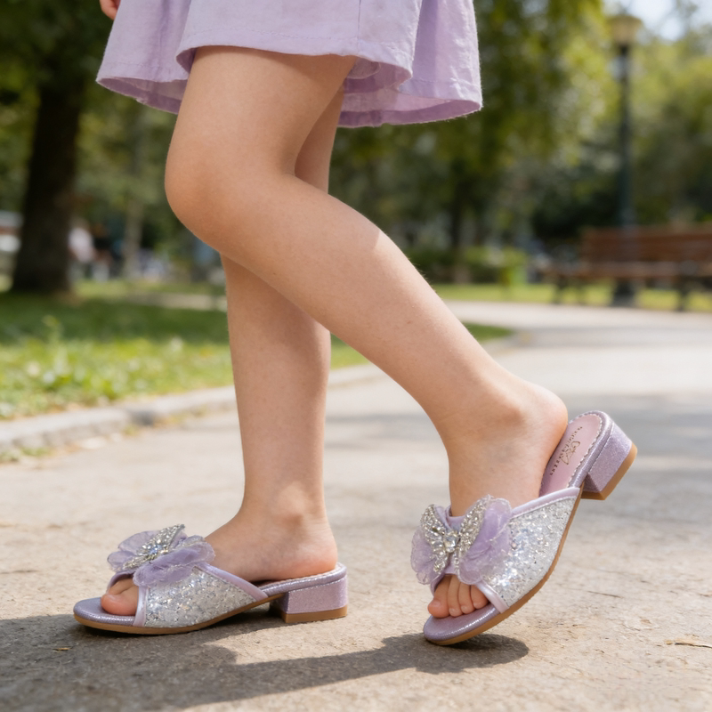 女童公主风凉拖鞋款儿童闪钻蝴蝶高跟鞋小女孩外穿一字拖水晶凉拖
