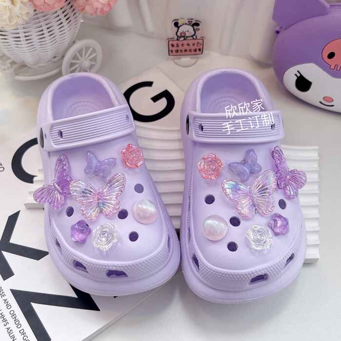 紫色蝴蝶配饰公主鞋女童厚底防滑沙滩洞洞鞋女款儿童外出凉鞋拖鞋