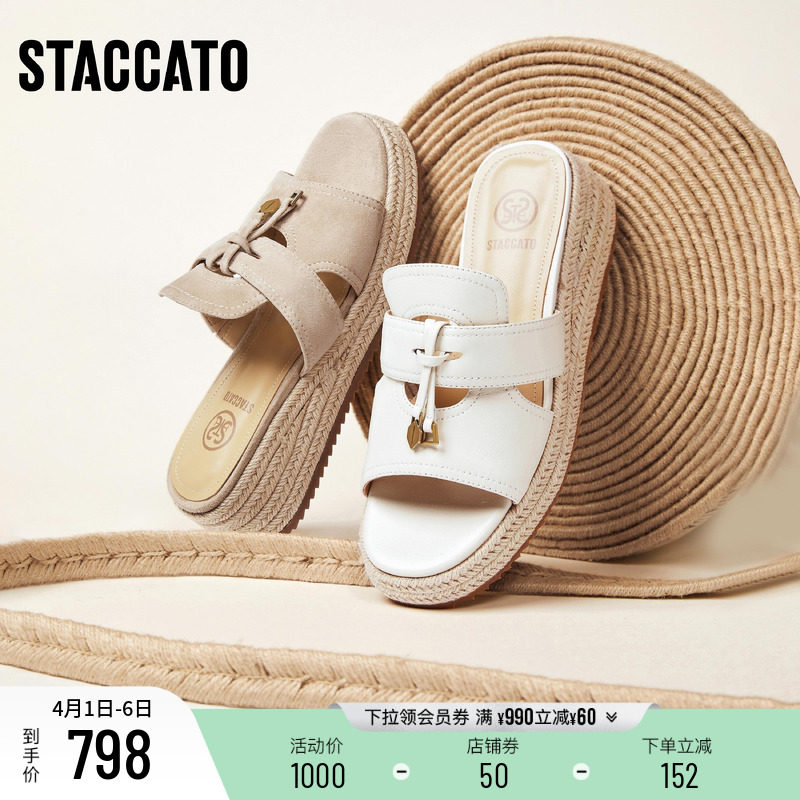 MILLIE'S/妙丽女士坡跟拖鞋夏季外穿2026新款时尚百搭草编凉拖鞋