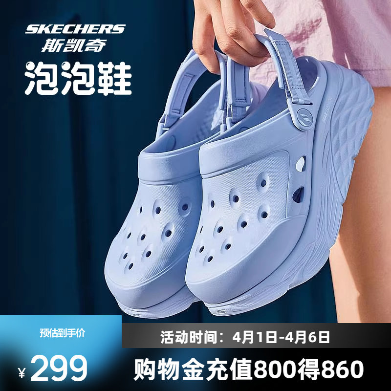 明星同款丨斯凯奇海豚泡泡鞋轻质厚底洞洞鞋清新百搭凉拖鞋111268