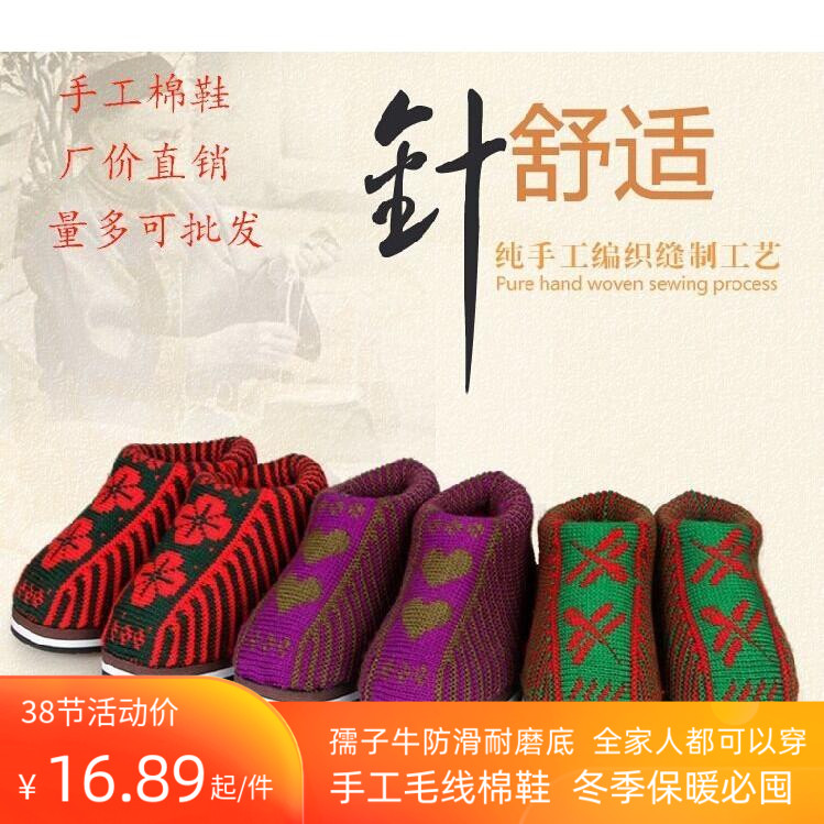 孺子牛手工毛线编织棉鞋拖鞋拖帮海绵鞋底成人泡沫防滑女儒子牛