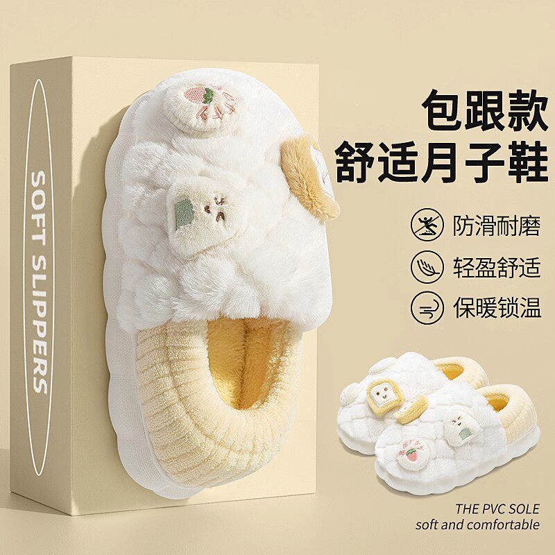 月子鞋女秋冬季2024新款孕妇棉拖鞋女士室内家居可爱包跟棉鞋女款