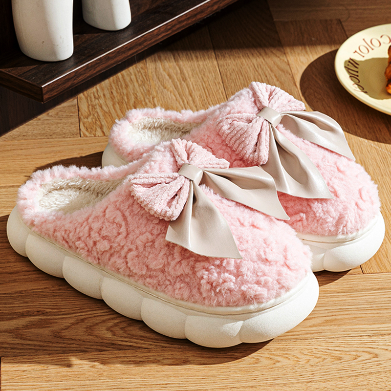 可爱棉拖鞋女秋冬季2025新款家居室内毛绒保暖蝴蝶结情侣毛拖鞋冬