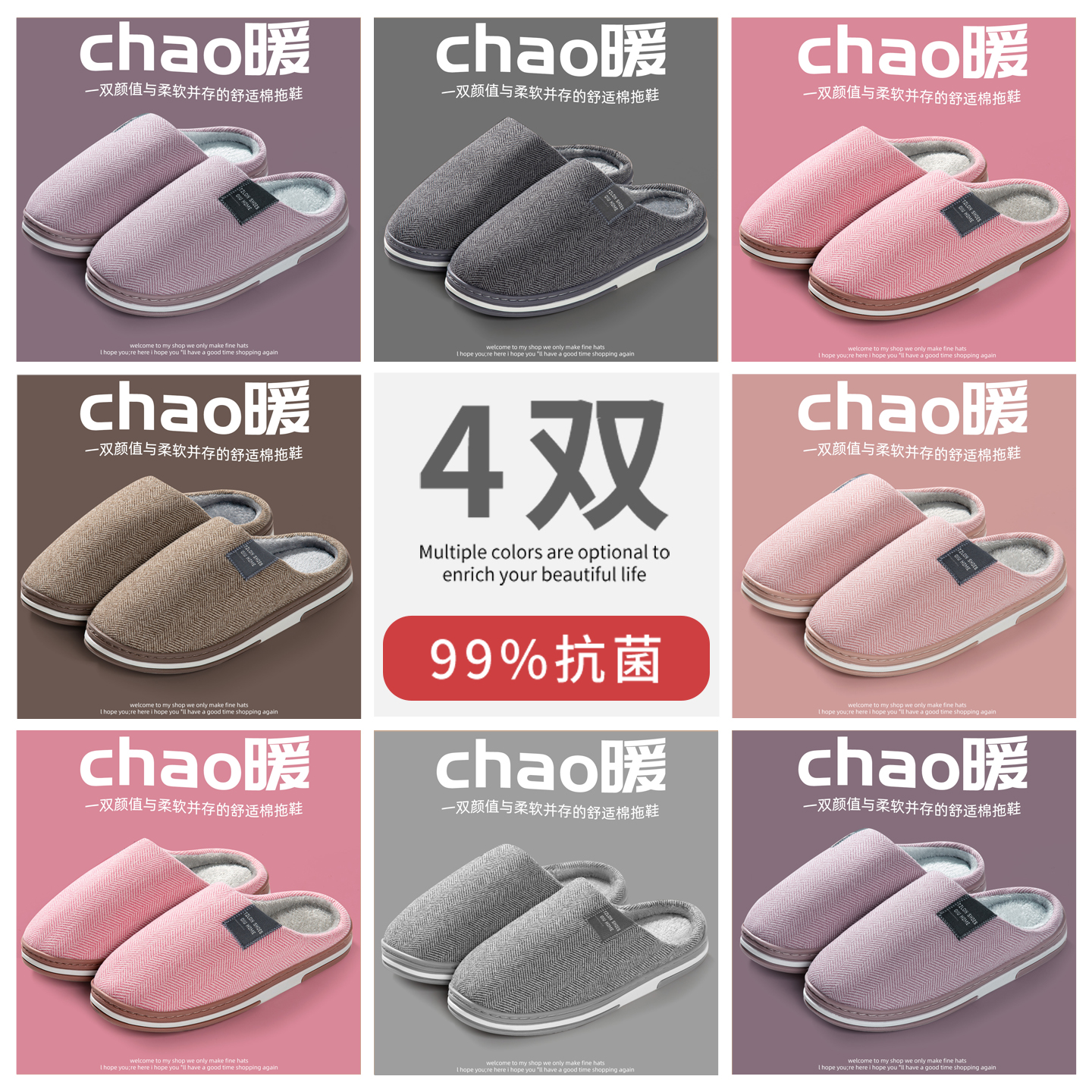 4双装抗菌秋冬棉拖鞋家用招待客人室内家居防滑防臭保暖毛拖鞋女6