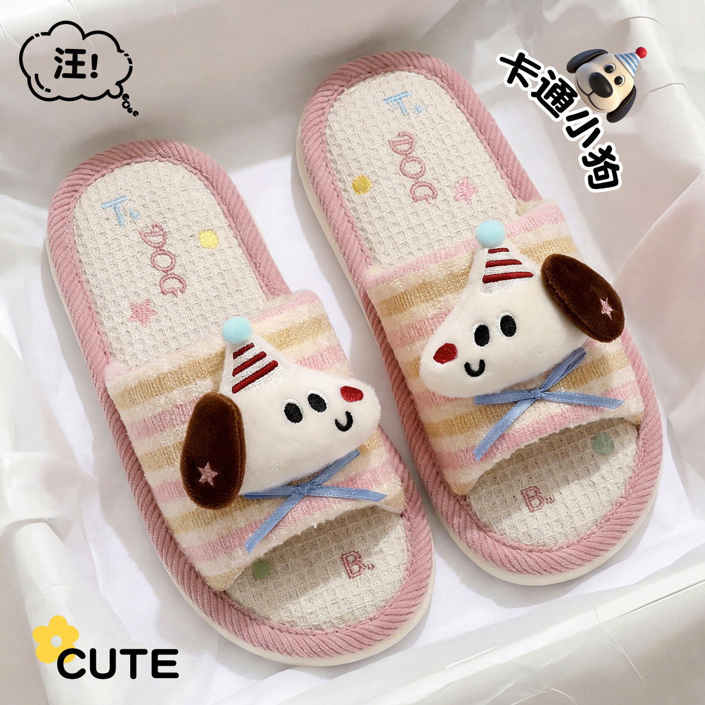 卡通亚麻拖鞋女款春夏2026新款透气吸汗防滑防臭四季棉麻布拖鞋女
