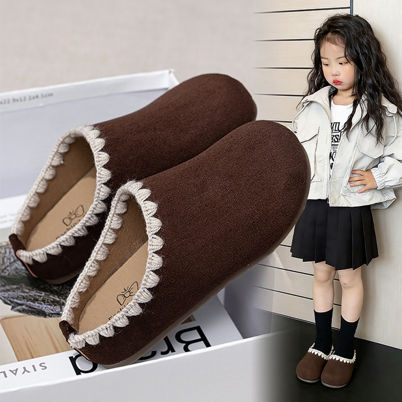 女童绒面凉拖鞋2026春秋季儿童复古防滑花边勃肯鞋外穿厚底半拖鞋