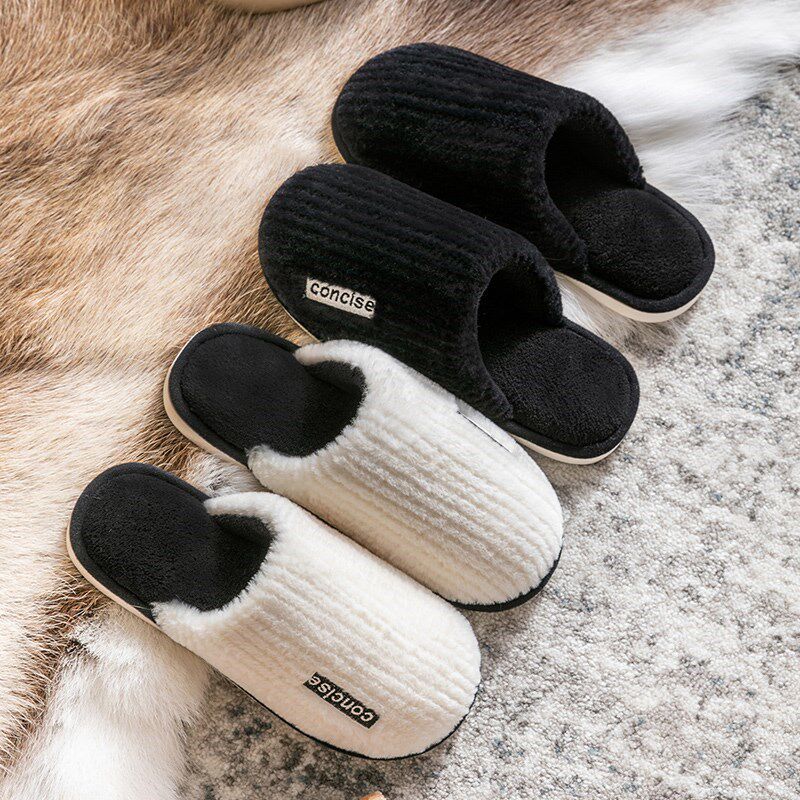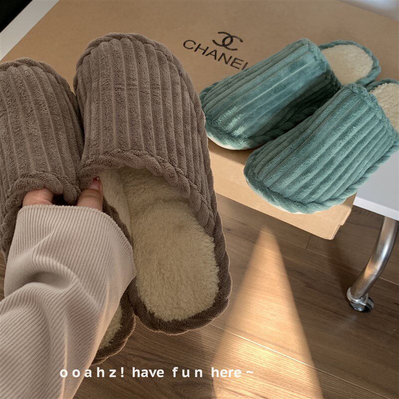 极速摆地摊去~经济基础款情侣粗条绒棉拖鞋 秋R冬居家地板月子鞋